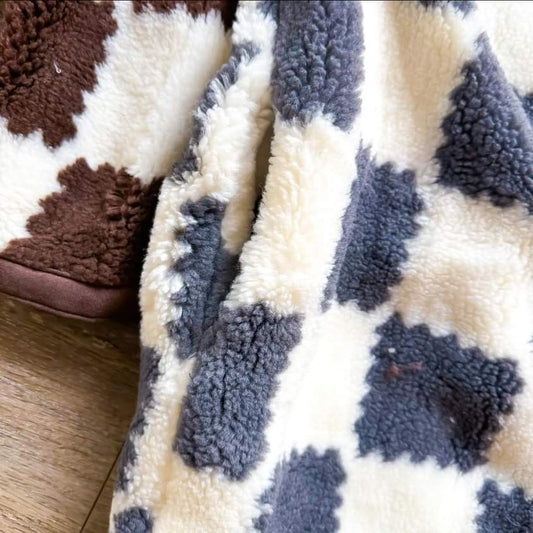 Checkmate Sherpa Blazer Slate Blue & Cream