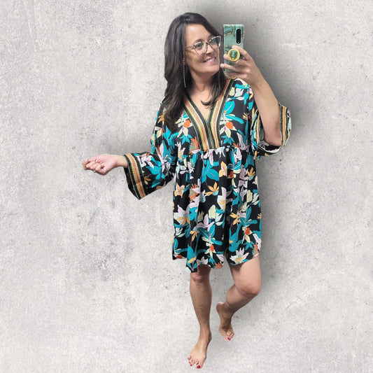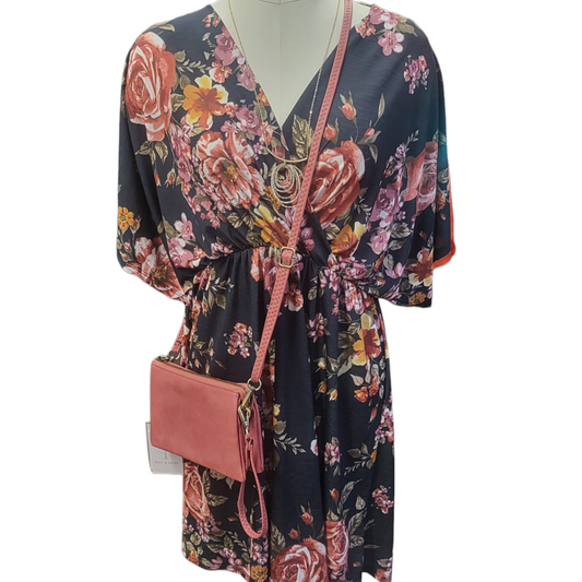 Wrap & Roll MIDI Dress Charcoal Background with Gorgeous Floral Pattern