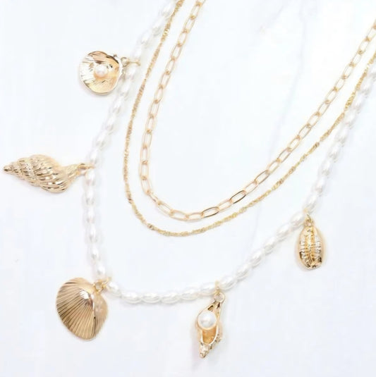 Calm Seas Pearl and Shell Charm Necklace