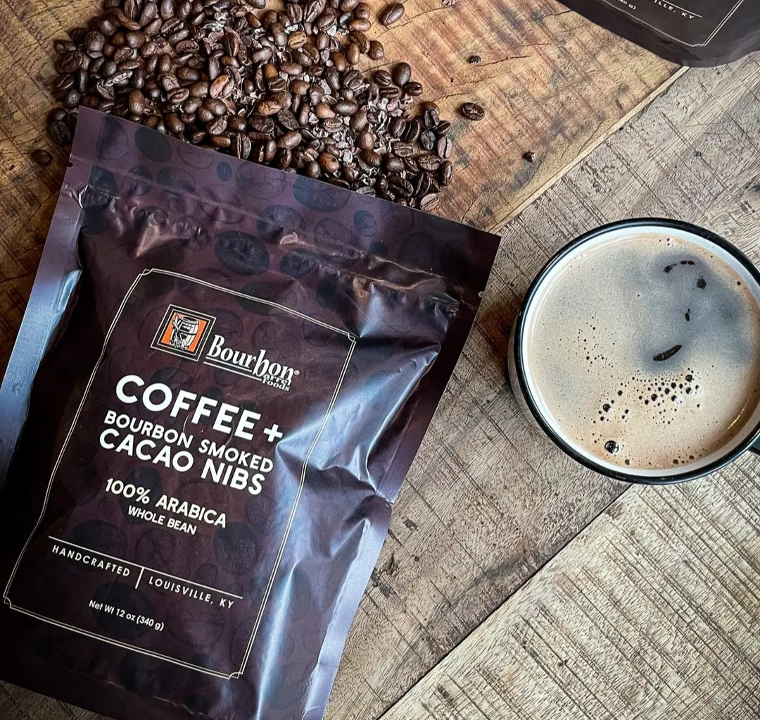 Indulge in a unique and flavorful coffee experience with Bourbon Barrel Foods Roasted Coffee Beans. Made in the USA, these premium coffee beans are aged with bourbon and infused with bourbon aged cacao nibs for a smooth and rich taste. Elevate your morning routine with this expertly crafted blend.