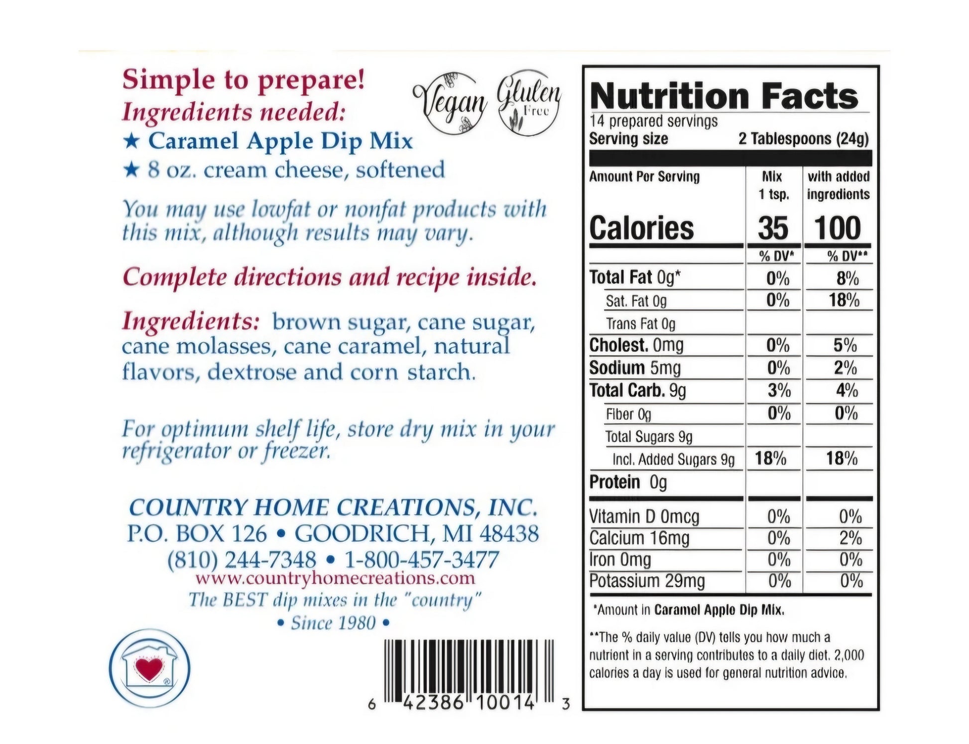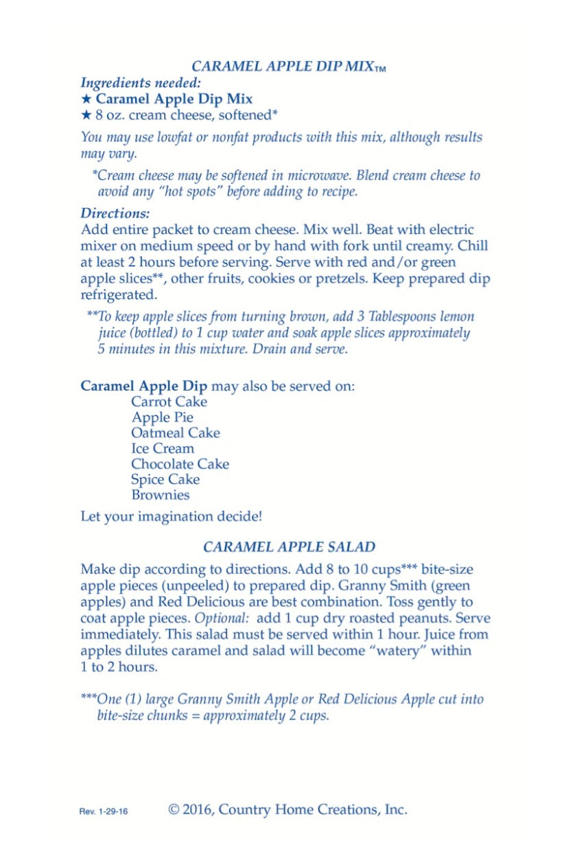 A year-round bestseller, Caramel Apple Dip Mix is packed full of caramel flavor. Perfect for fall and so easy to prepare. This mix can be made into tons of recipes, from brownies to cake to fruit salad.