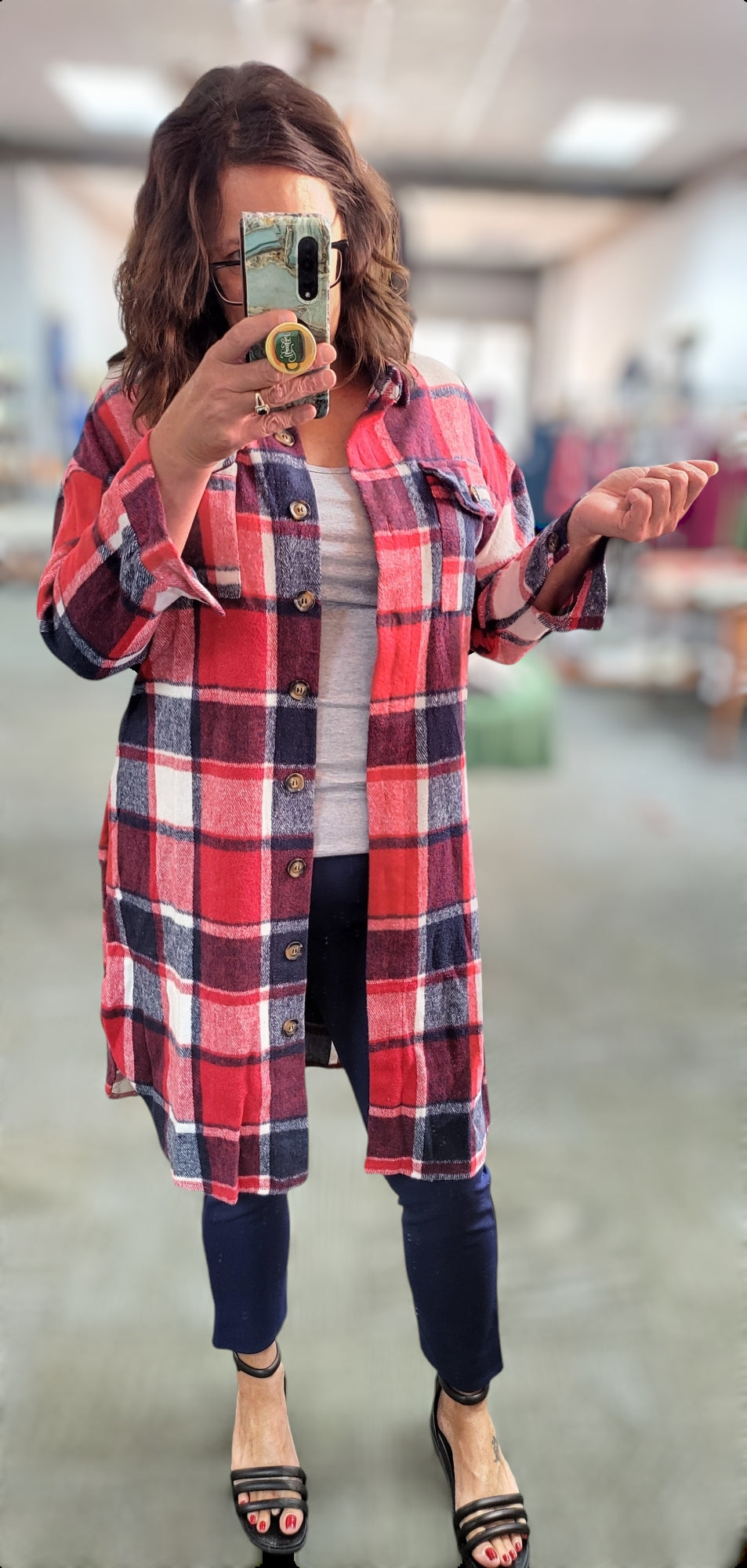 Whether you're layering it over a simple tee for a day out or wearing it as a statement piece during your weekend adventures, this Long Flannel Shacket is more than just clothing; it’s an experience of comfort and style that resonates with your inner warmth. Embrace the season with confidence and let your personality shine through this thoughtfully designed piece.