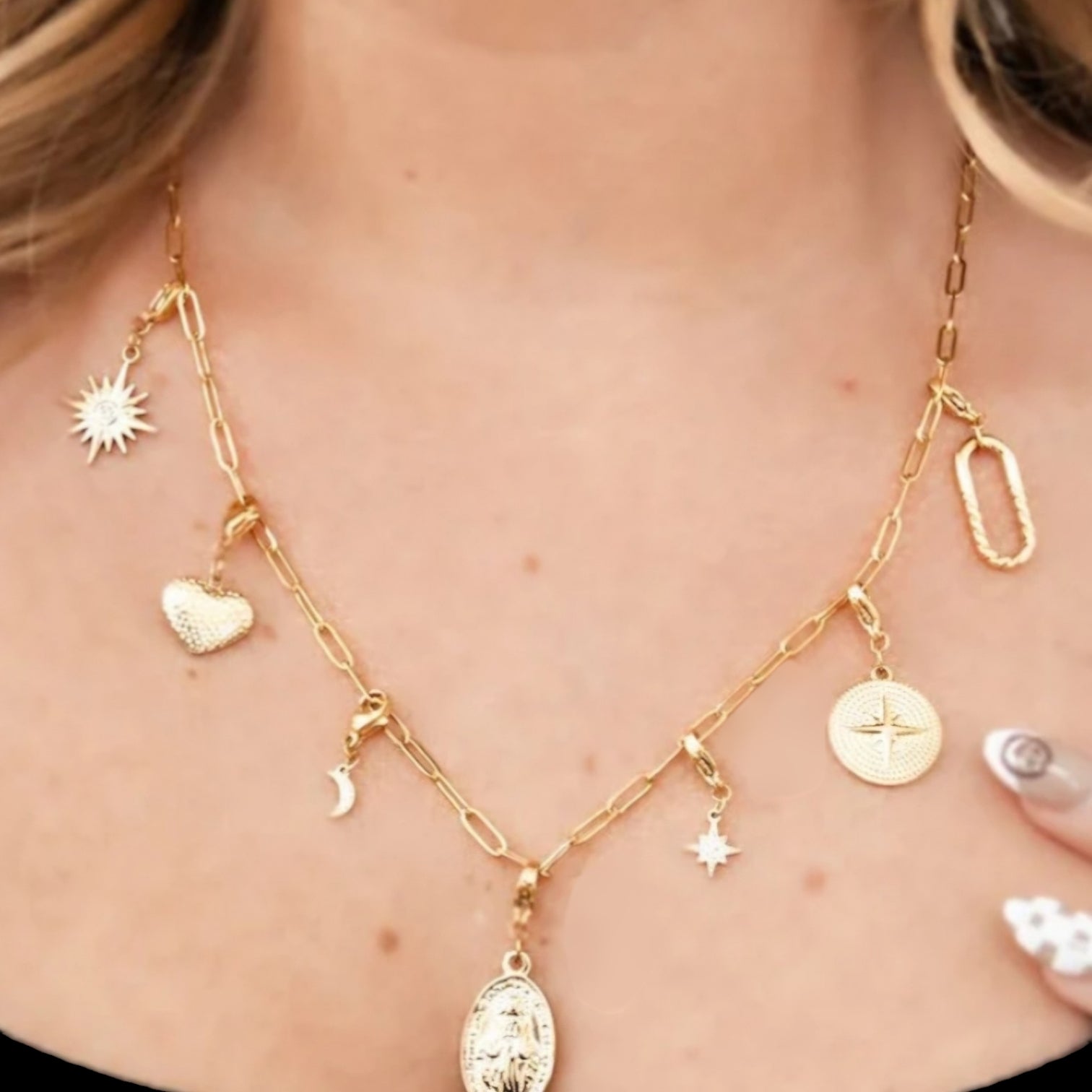 Make your outfits shine with our Chanelle Custom Charm Necklace Chain! This plain gold paperclip chain necklace is waterproof, available in 3 different sizes, and is meant to be paired with our Chanelle Custom Charm Necklace Charms that are sold separately. Create your own look and customize this accessory to your liking, and style it with your favorite outfit for a fabulous fashion-forward look! Material: Stainless Steel
