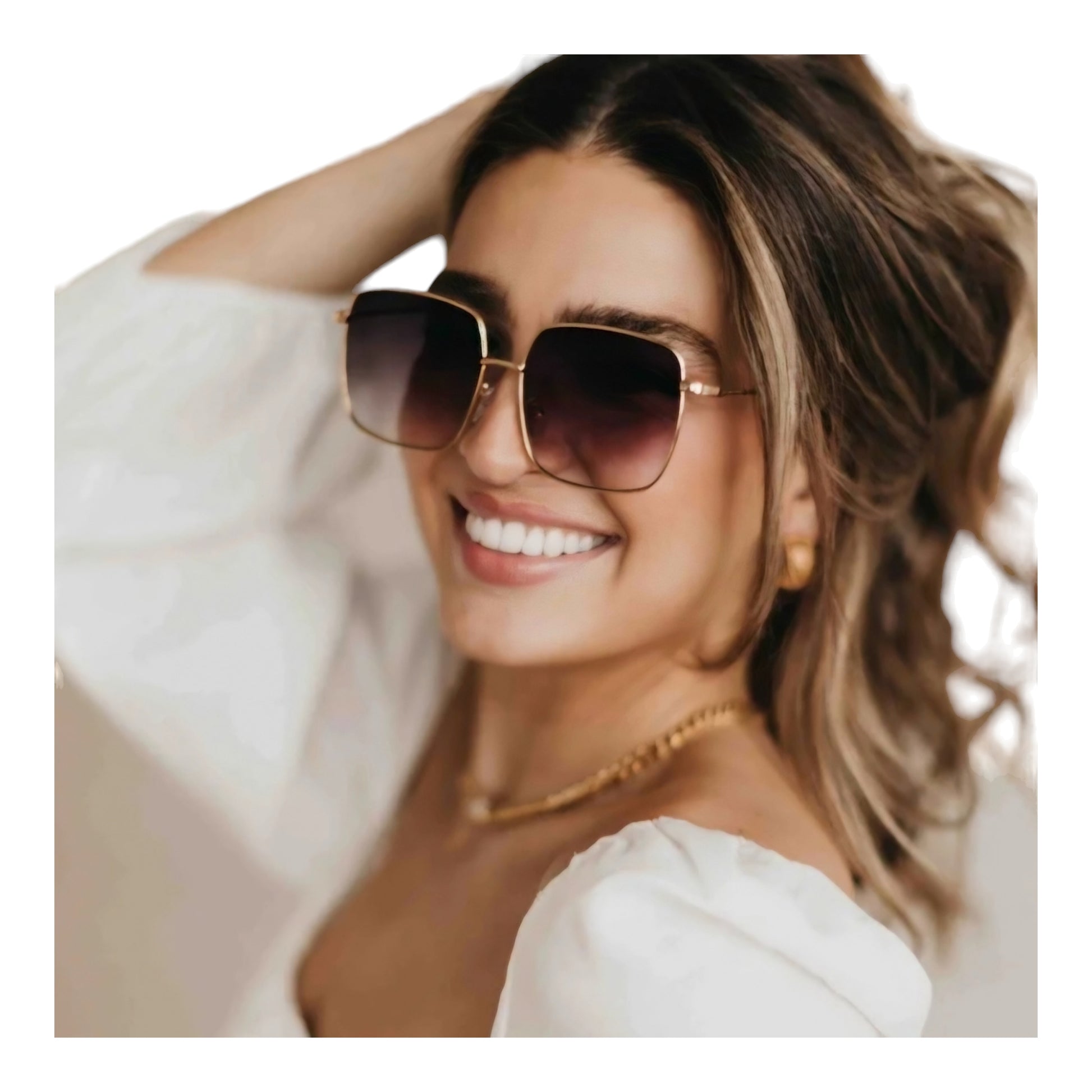 Our Cynthia Sunglasses are here to add a pop of color into your accessories! These wide framed glasses are both stylish and fun, making them a great statement piece. Available in fushia, black, brown and purple lenses, all with gold detailing.