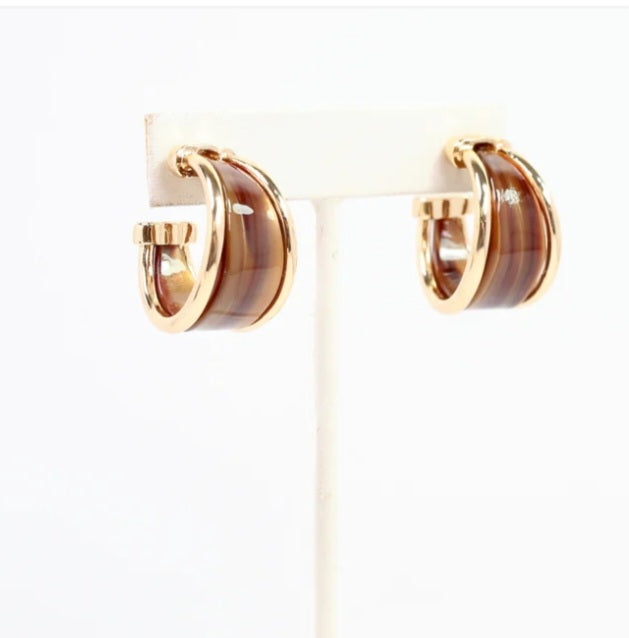 Add a splash of autumn charm to your look with these Daphne Gold Trimmed Hoop Earrings. Lightweight and effortlessly stylish, their warm brown acetate and shiny gold accents blend with any outfit, making them your go-to for cozy fall vibes. Easy to wear, impossible to ignore!