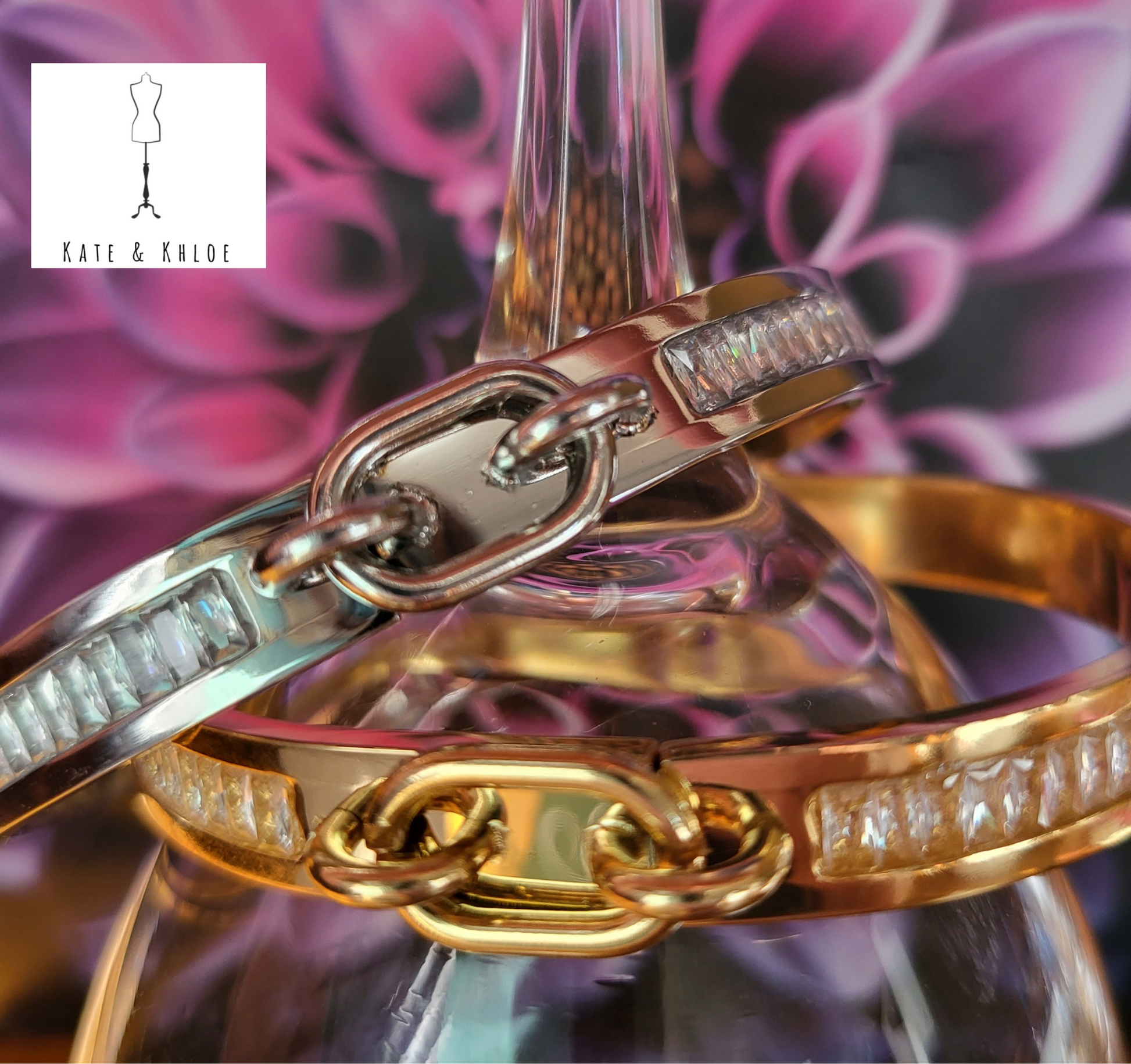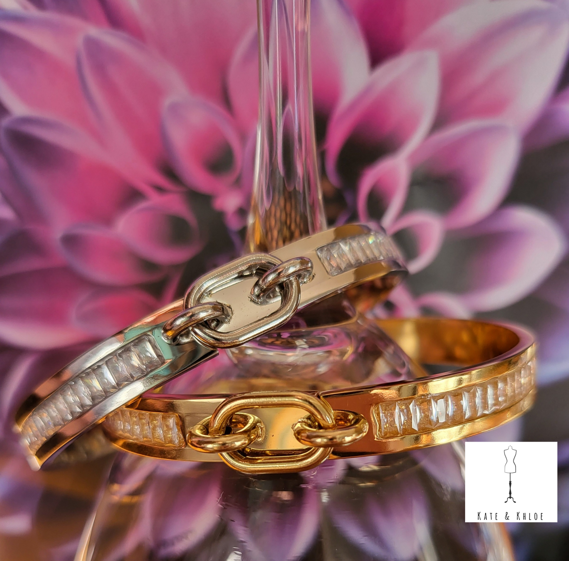 Available in both gold and silver finishes, this bracelet allows you to choose the perfect complement to your personal style. Whether you prefer the timeless allure of gold or the sleek elegance of silver, the "Elegance in Chains" bracelet effortlessly adds a touch of glamour to any occasion.
