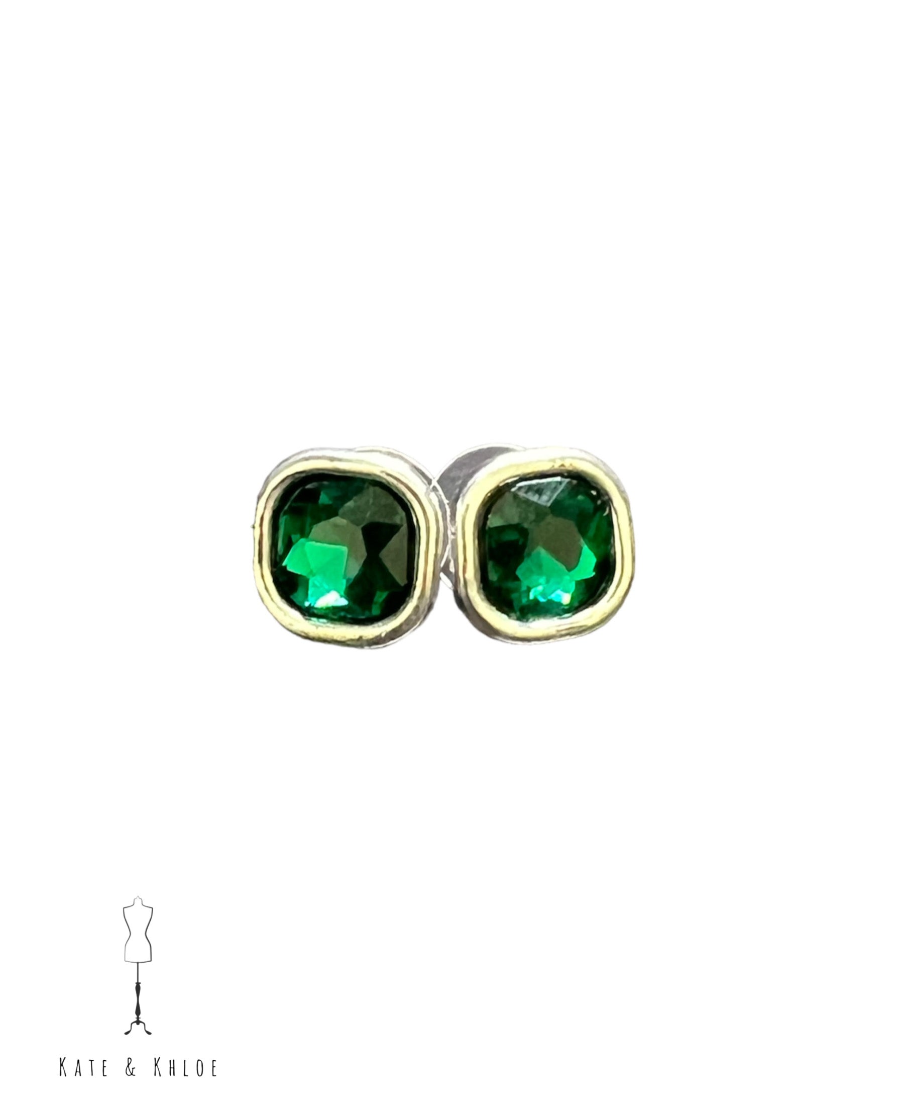 These emerald color gems set in square posts are the perfect size to add just the right amount of sparkle to any outfit! Approximately 3/4” posts