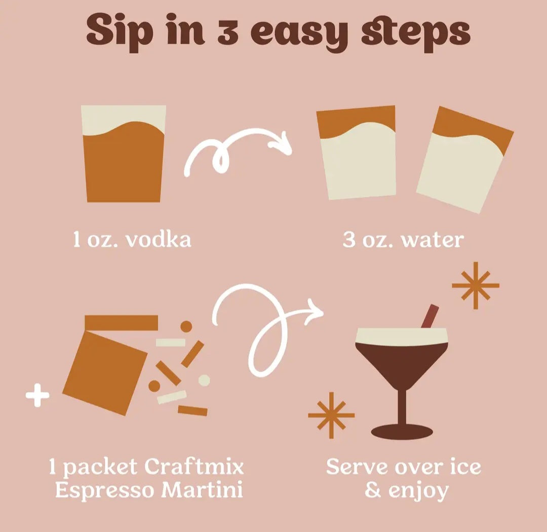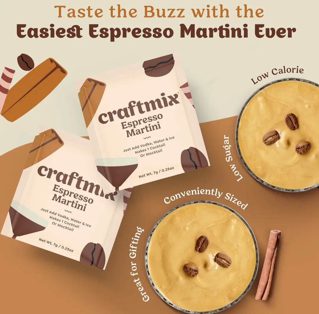 Get ready to elevate your cocktail experience with Craftmix! Our Espresso Martini mixer is perfect for those on the go. Customers enjoy using Craftmix mixers at a variety of events, from camping and festivals to concerts, house parties, and more—whether you're at a bar or enjoying a night in.