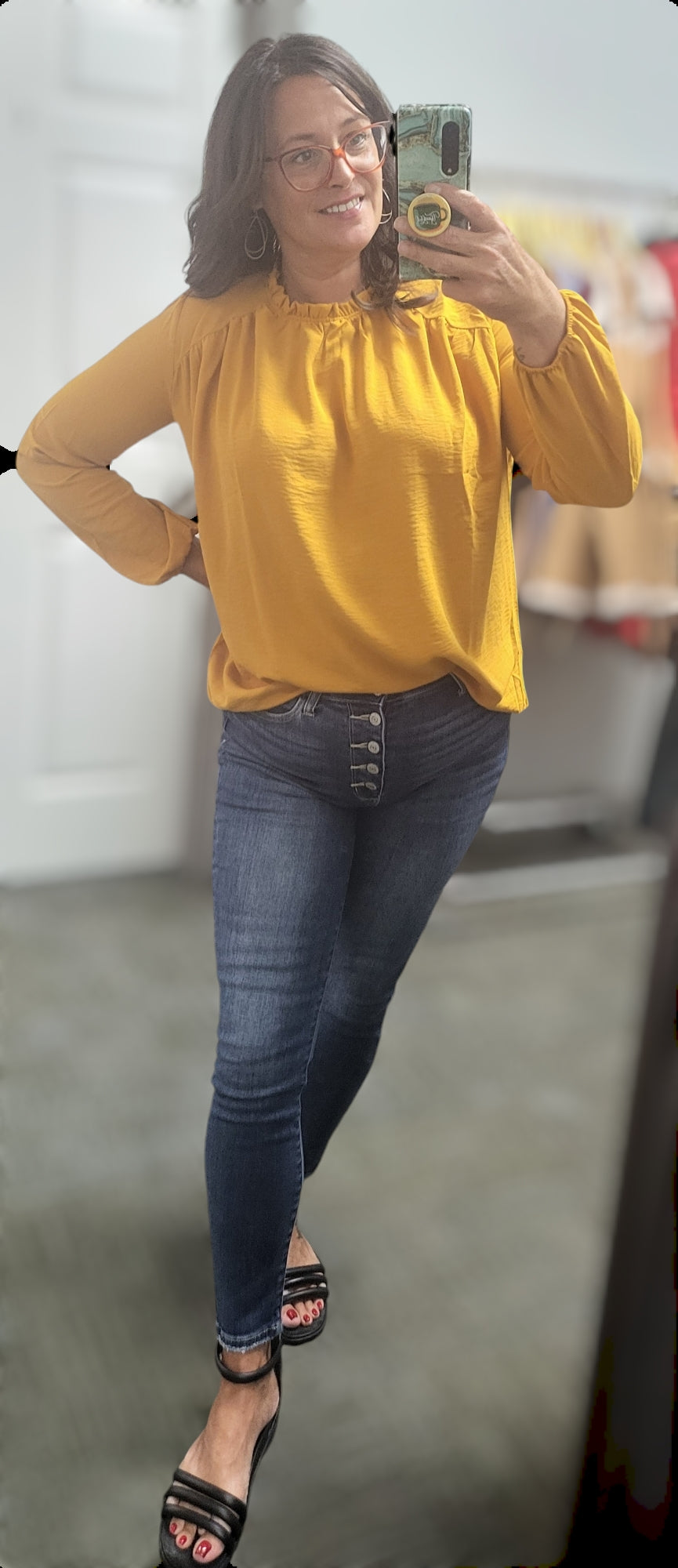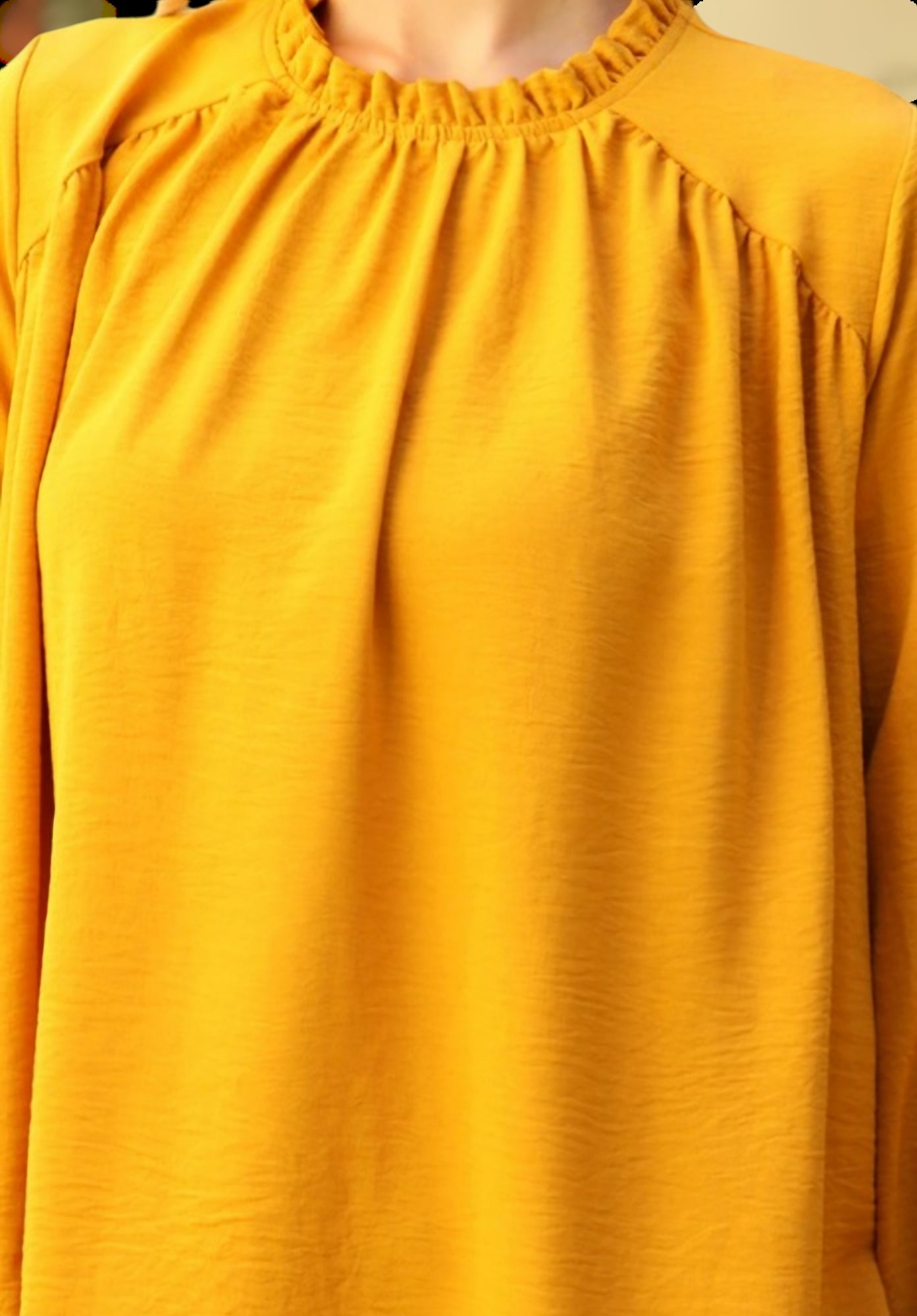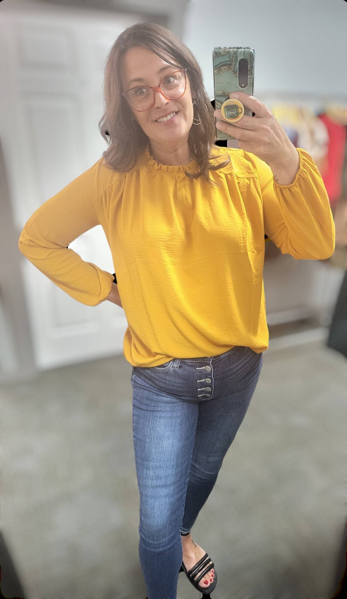 Elevate your wardrobe with our Golden Hour Puff Sleeve Blouse, a must-have for the modern woman. This stunning mustard-hued top features a flattering merrow neckline and lightweight woven fabric, making it perfect for both date nights and business casual settings. The chic puff sleeves add a touch of drama, effortlessly transitioning from workweek sophistication to weekend relaxation. Pair it with tailored trousers for the office or your favorite jeans for a night out. Shine bright and feel confident in this versatile piece that captures the essence of effortless style!