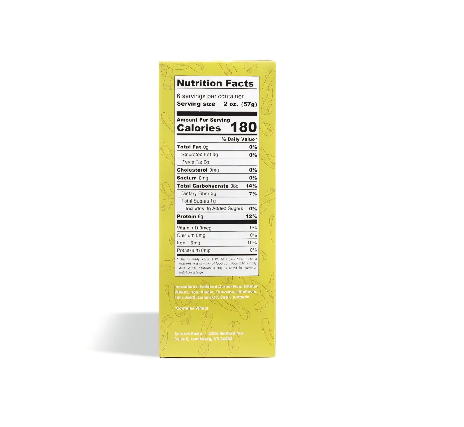 **Ingredients:** Semolina Flour, Water, Lemon Oil, Basil, Turmeric