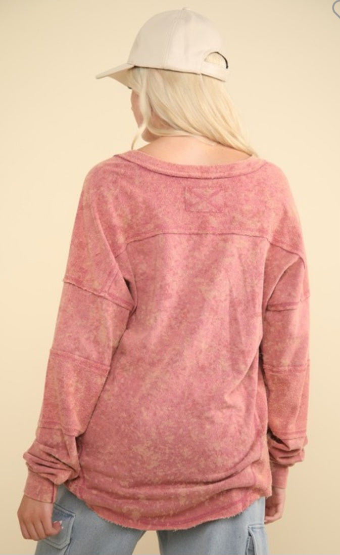 Mauve Masterpiece- Washed Knit V-Neck Oversized Top