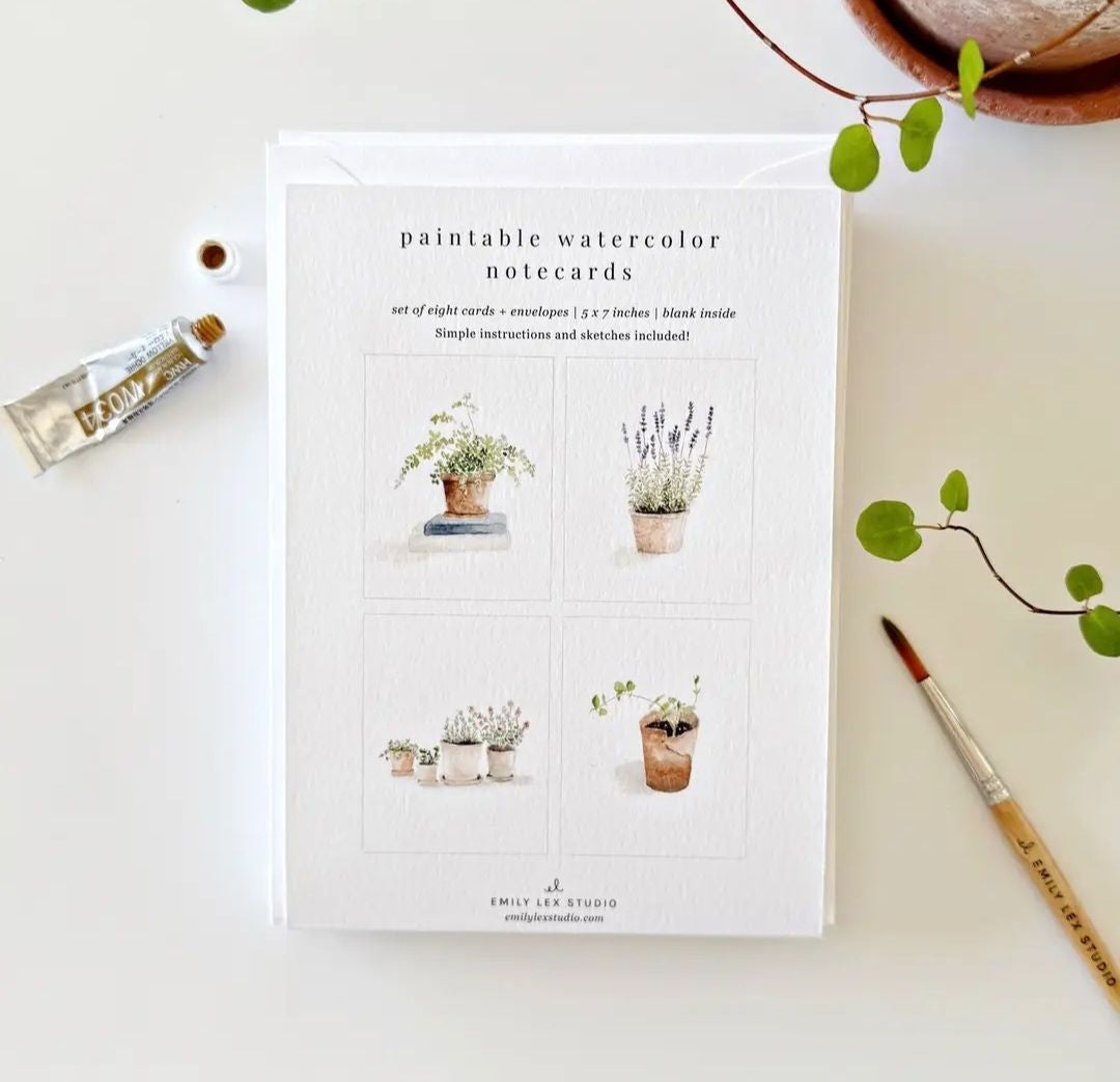 •8 Paintable Notecards + Envelopes: Two of each plant illustration to inspire your creativity.
