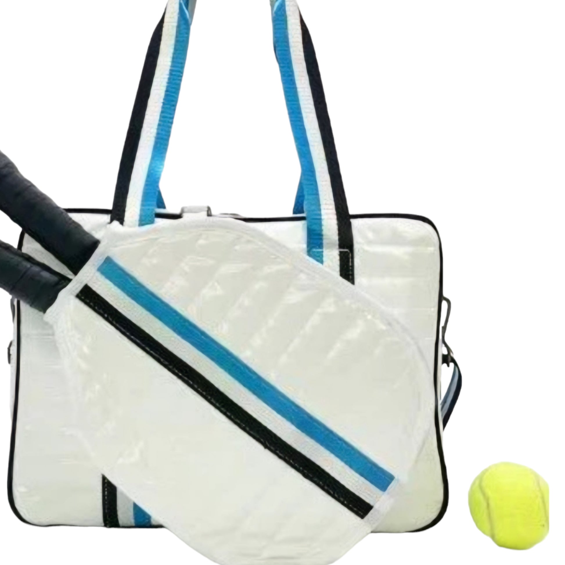 Elevate your pickleball gear game with our stylish puffer pickleball bag, designed to carry two paddles and all your essential gear in style. Crafted with modern aesthetics in mind, this bag not only provides ultimate protection for your paddles but also offers ample space for balls, water bottles, and other accessories. The durable yet flexible puffer material ensures your equipment stays safe from the elements while showcasing a trendy, minimalist design that's perfect for any pickleball player. With a comfortable and adjustable shoulder strap for easy transport, this bag lets you hit the courts with everything you need, all while making a fashion statement. Upgrade your pickleball experience with this sleek, functional, and on-trend bag.