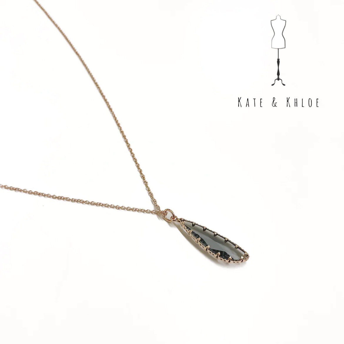 Introducing the Starley Stone Necklace in Smokey Grey (shown in clear on woman in 2nd photo), a statement accessory that will add a dash of sparkle to your every step! Its long chain design holds a beautiful stone at the end to further draw in eyes. Pair the Starley with a dress for a glamorous night out, or with your favorite pair of denims with a plain t-shirt for an elevated yet casual look.