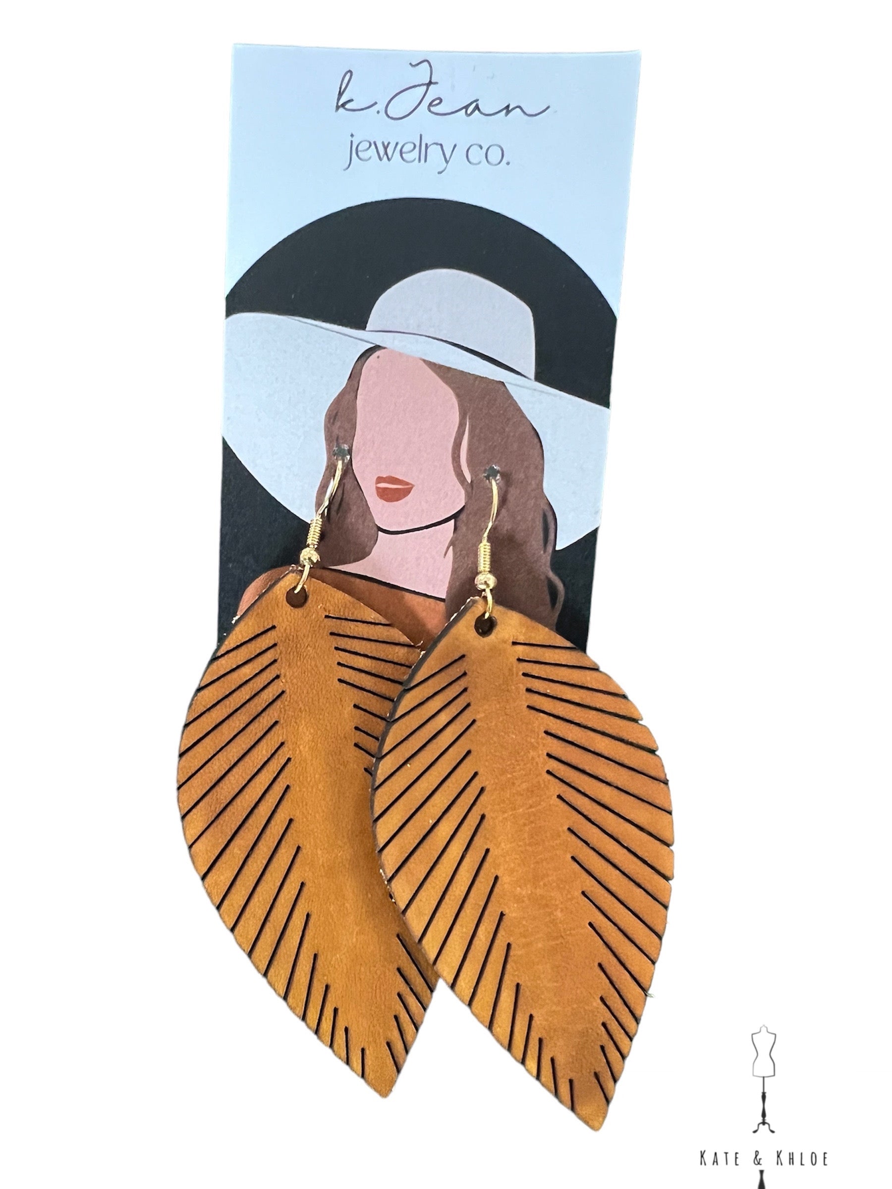 These stunning handcrafted earrings are made of genuine tan leather and feature a handprinted feather design. Perfect for any boho, slightly western, or trendy chic look, these earrings are finished with stainless steel hypoallergenic hooks for a comfortable, lightweight fit.