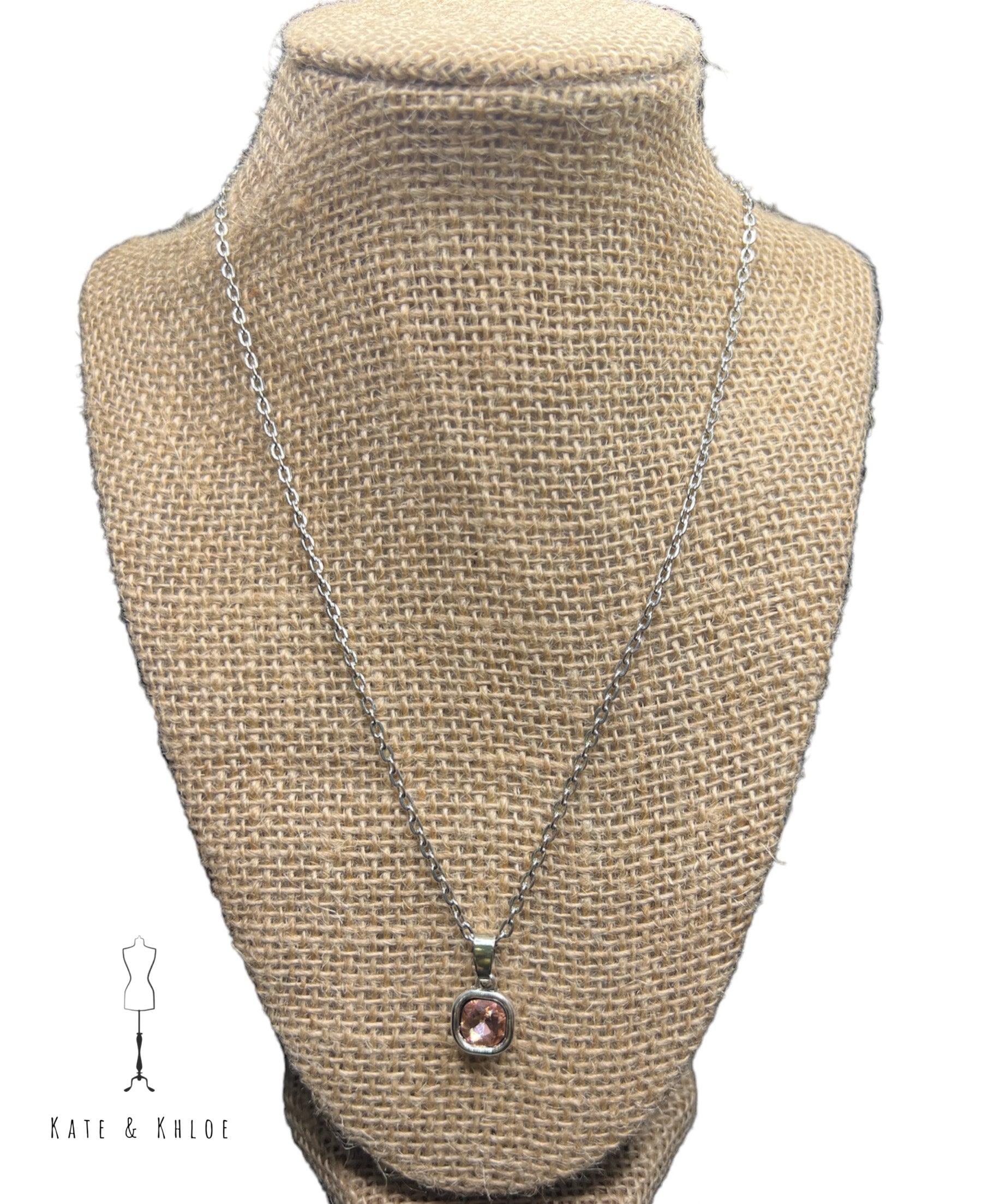 This silver tourmaline pink crystal necklace is lightly adjustable in the back. This rose gold pink is perfect for that flash of color needed to perk up any outfit!