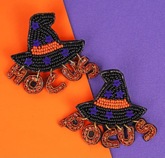 Whether you're a witch at heart or simply looking to embrace the spirit of the season, these earrings are an absolute must-have. So, grab your broomstick, put on your favorite witchy attire, and let our Seed Bead Hocus Pocus Witch Hat Earrings be the finishing touch that completes your bewitching look. Get ready to cast a spell of style and leave everyone under your fashionable charm!