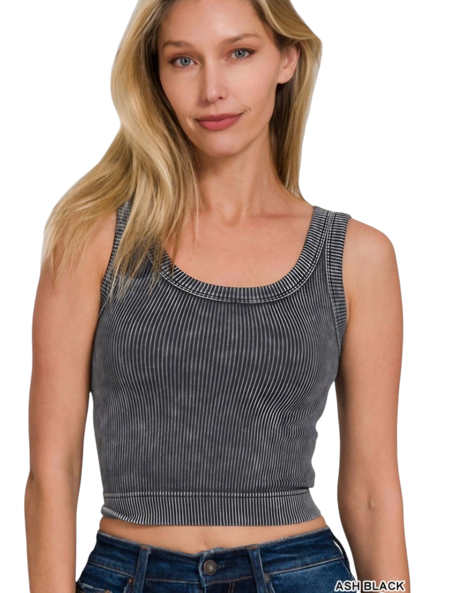 Whether you're heading to the beach, going out for a day of shopping, or just hanging out with friends, this vintage wash ribbed seamless cropped cami top is sure to become a summer staple in your wardrobe. So why wait? Add it to your cart today and start enjoying the perfect blend of style and comfort!